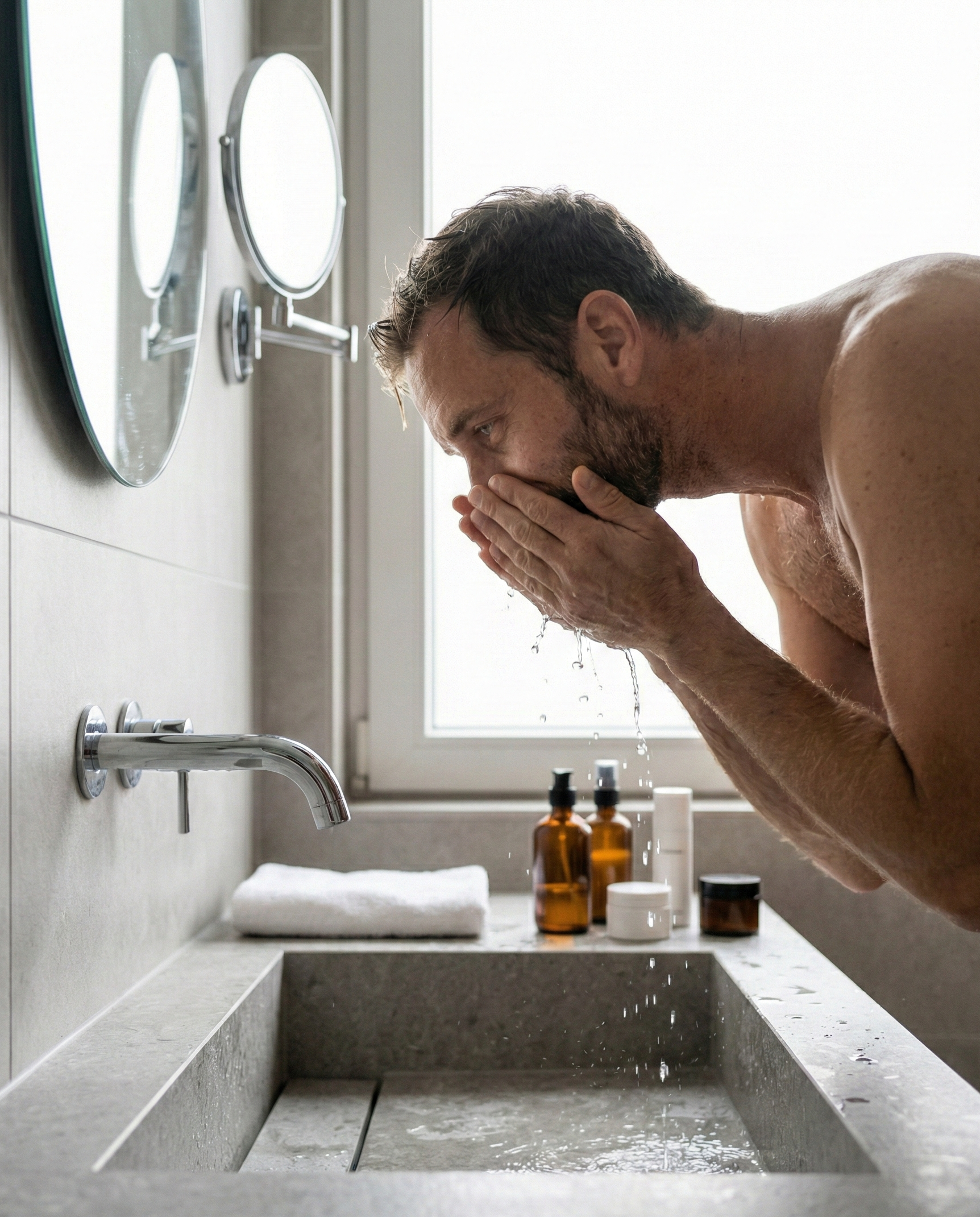 Wash away oil, sweat, and 'I stayed up too late,’ so he starts the morning clean and camera-ready.